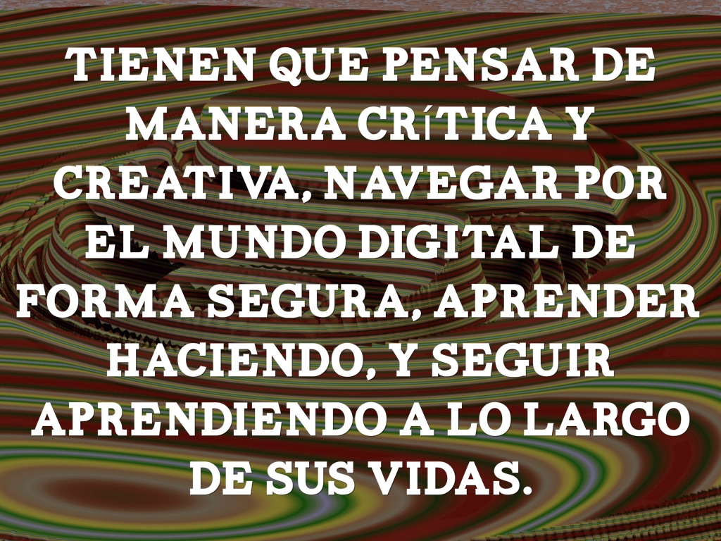 Tienen que pensar de manera crítica y creativa, navegar por el mundo digital de forma segura, aprender haciendo, y seguir aprendiendo a lo largo de sus vidas.