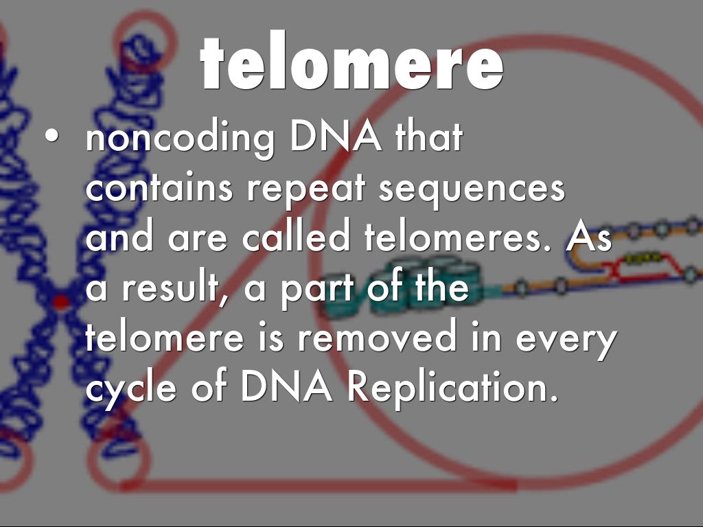 noncoding DNA that contains repeat sequences and are called telomeres. As a result, a part of the telomere is removed in every cycle of DNA Replication.