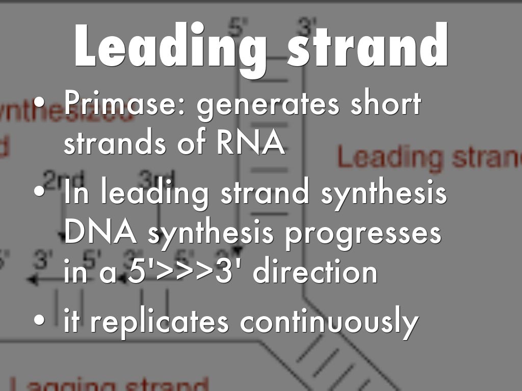 In leading strand synthesis DNA synthesis progresses in a 5'>>>3' direction