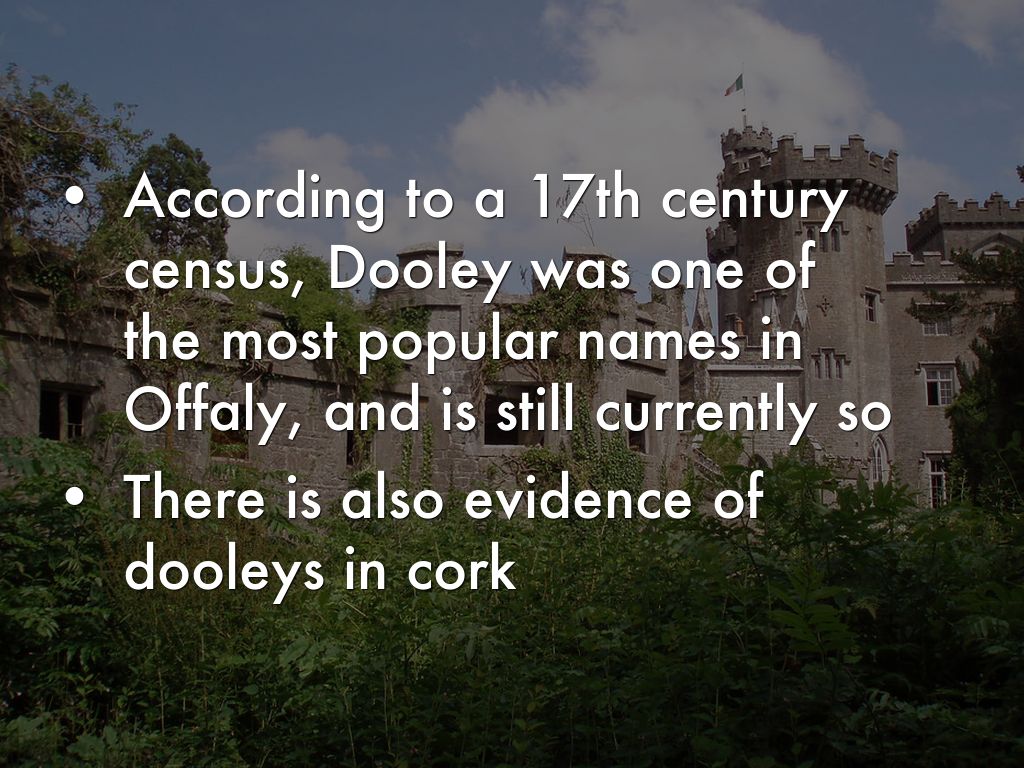According to a 17th century census, Dooley was one of the most popular names in Offaly, and is still currently so