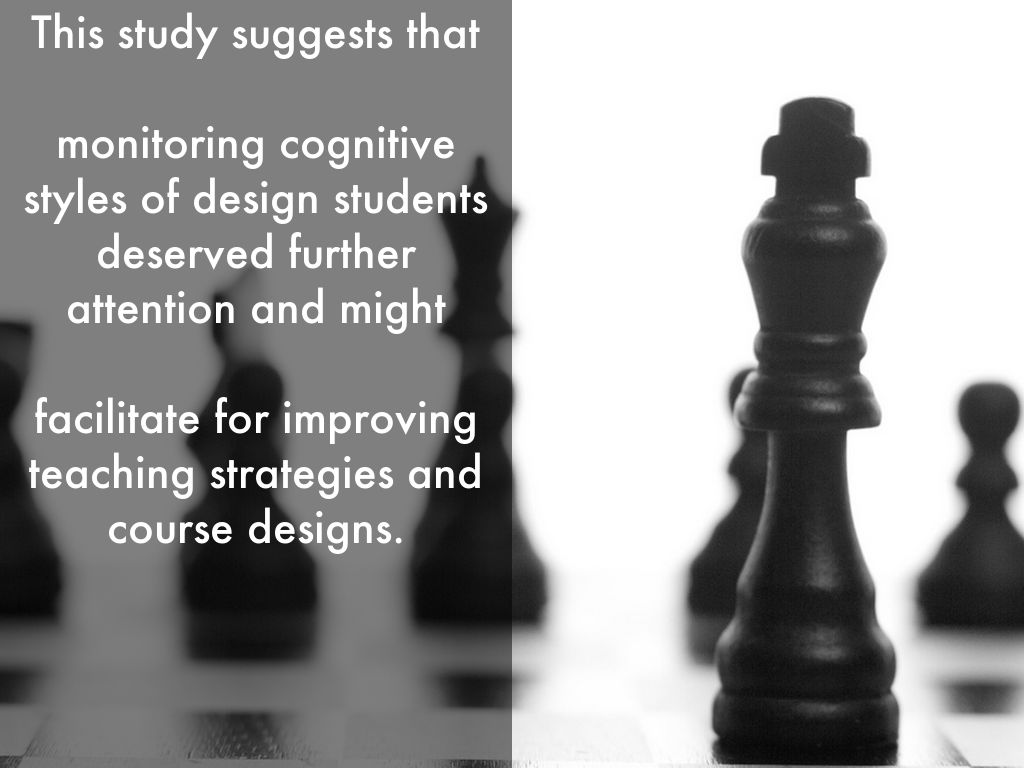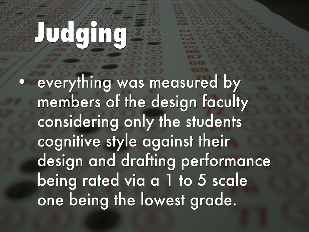 • everything was measured by members of the design faculty considering only the students cognitive style against their design and drafting performance being rated via a 1 to 5 scale one being the lowest grade.