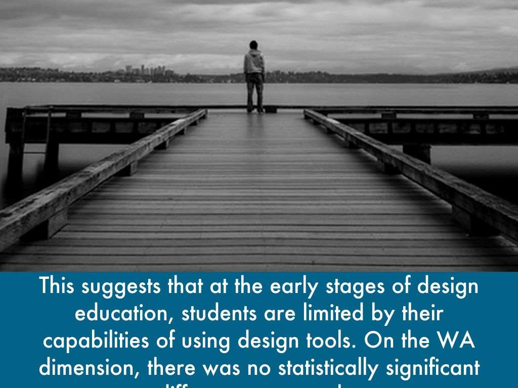 This suggests that at the early stages of design education, students are limited by their capabilities of using design tools. On the WA dimension, there was no statistically significant difference among the