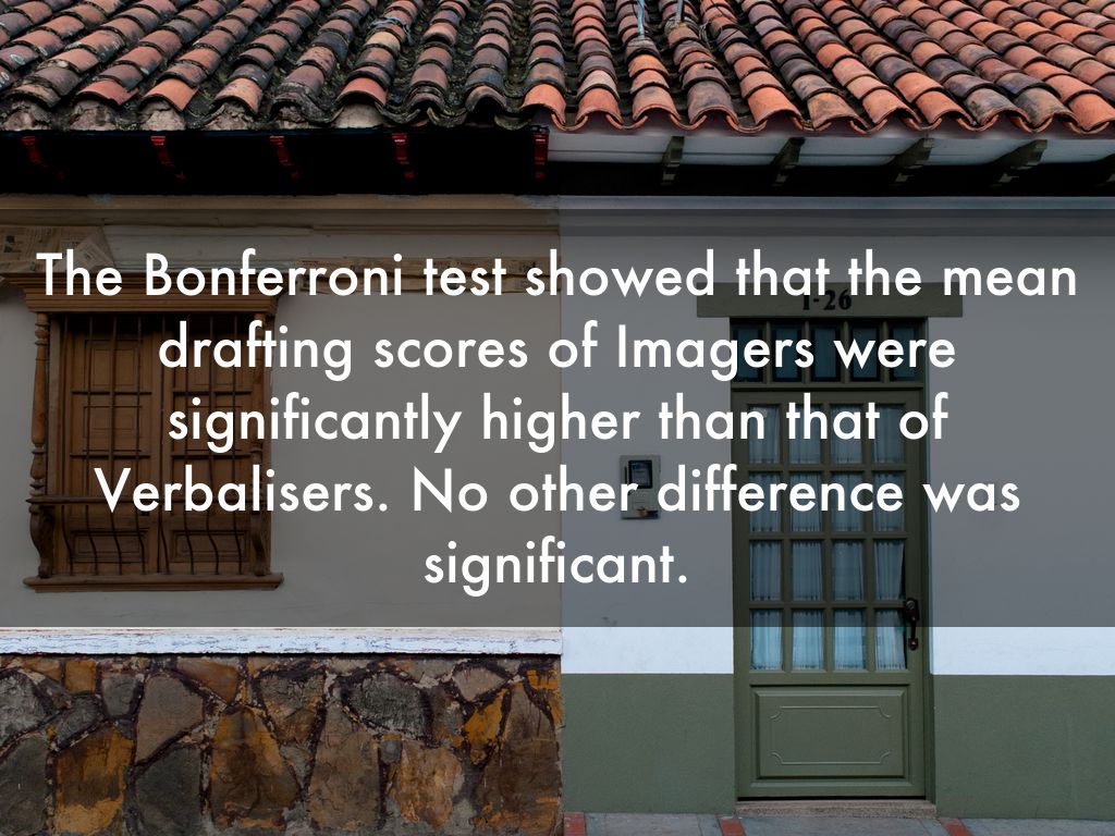 The Bonferroni test showed that the mean drafting scores of Imagers were significantly higher than that of Verbalisers. No other difference was significant.