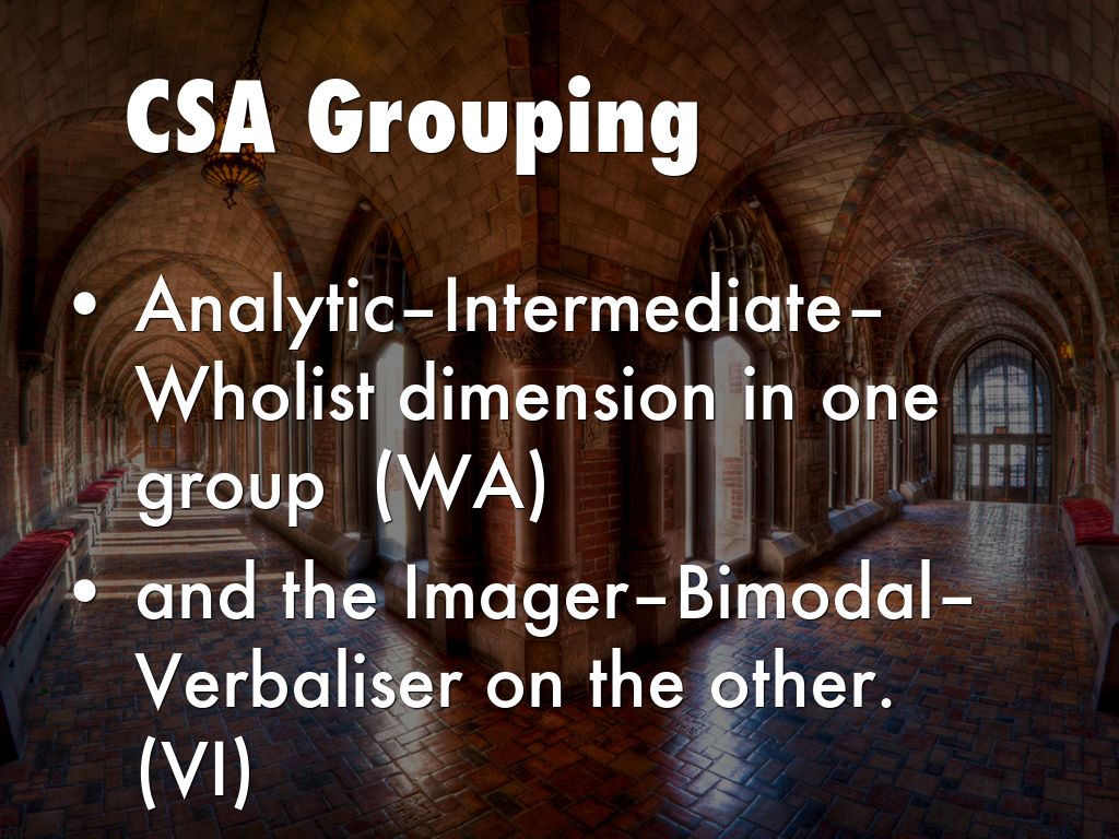 • Analytic–Intermediate–Wholist dimension in one group (WA)