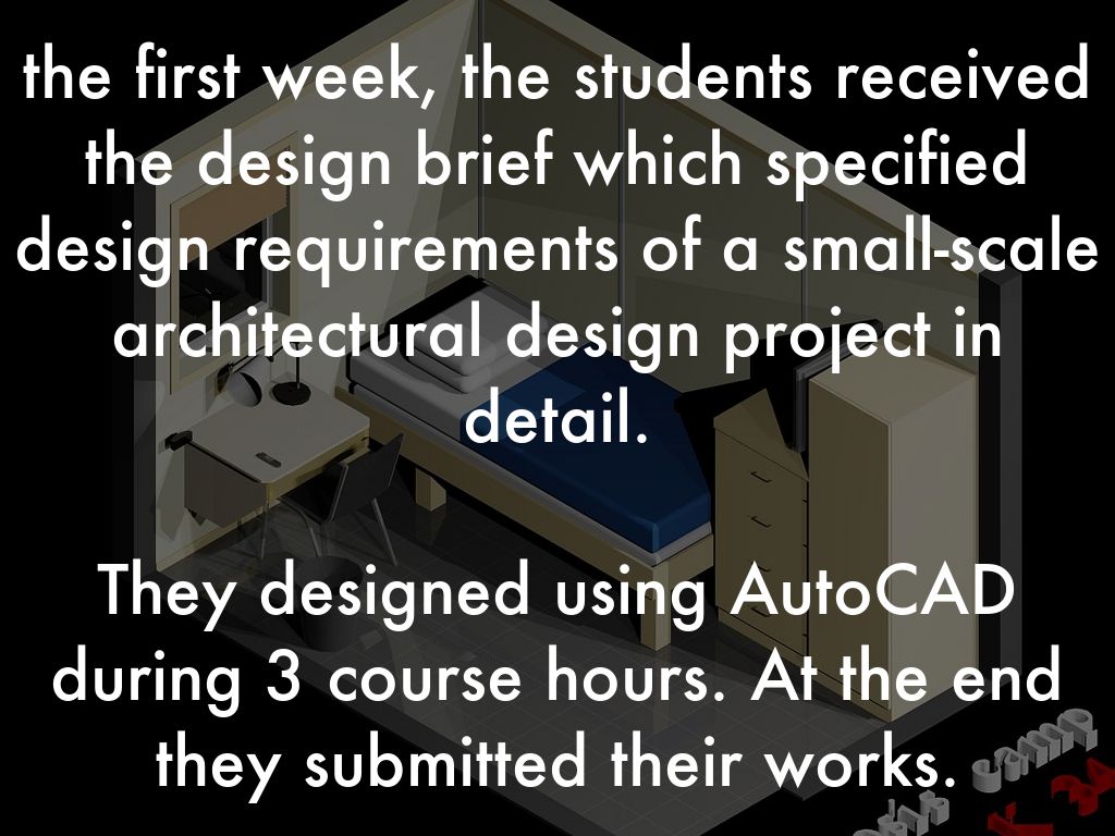 They designed using AutoCAD during 3 course hours. At the end they submitted their works.