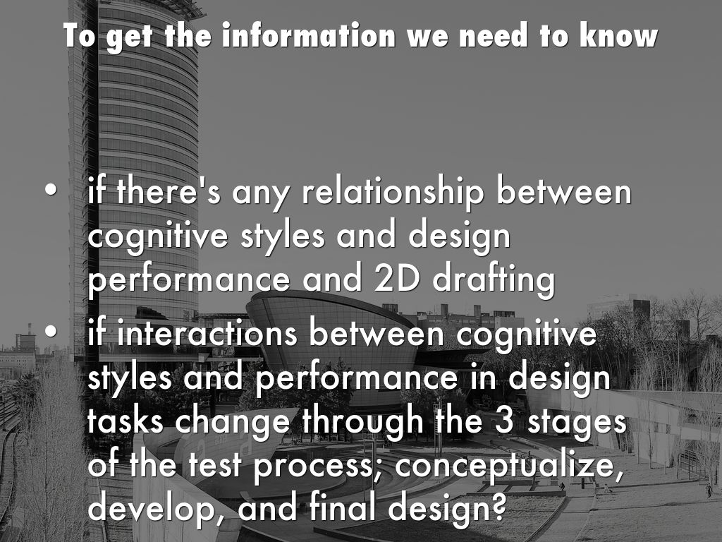 • if there's any relationship between cognitive styles and design performance and 2D drafting