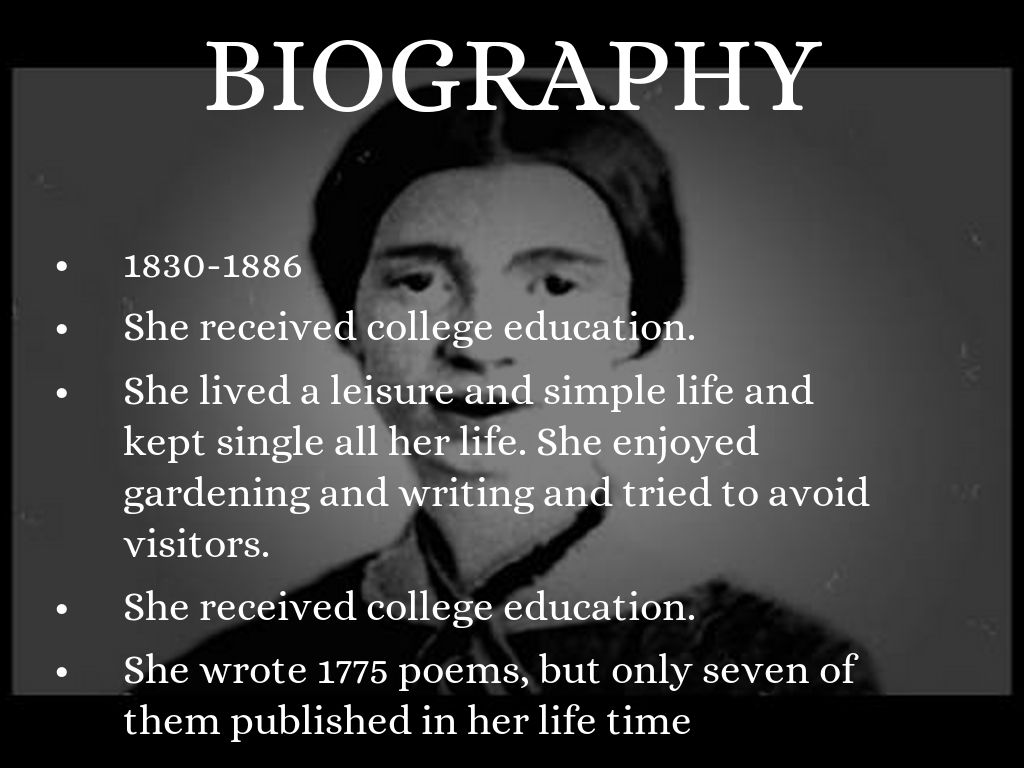 • Before her death, she asked her sister to burn all her poems. Instead, her sister published them.