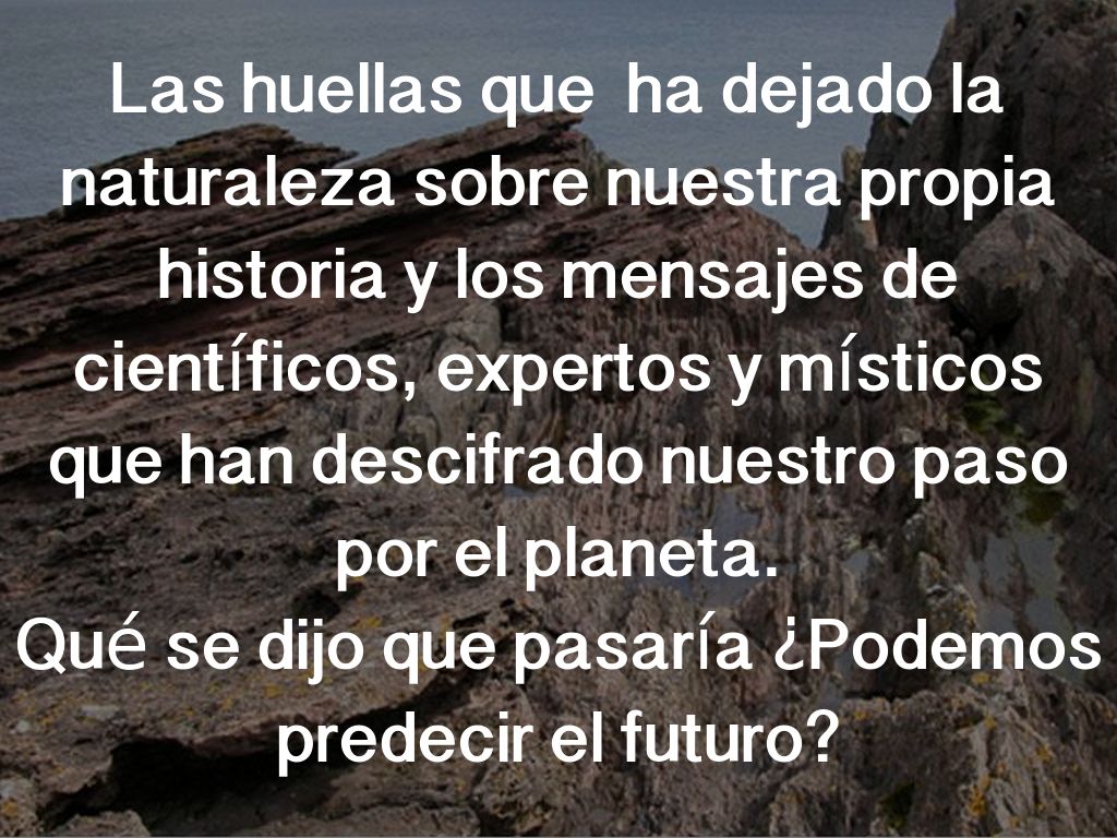 Las huellas que ha dejado la naturaleza sobre nuestra propia historia y los mensajes de científicos, expertos y místicos que han descifrado nuestro paso por el planeta.