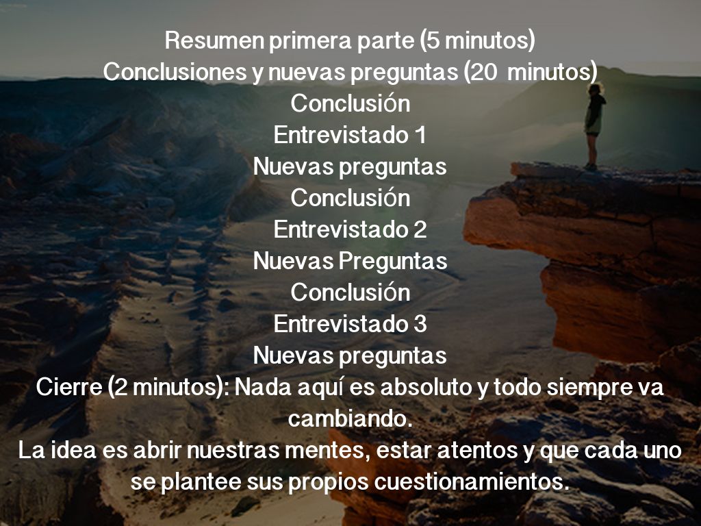 Cierre (2 minutos): Nada aquí es absoluto y todo siempre va cambiando.