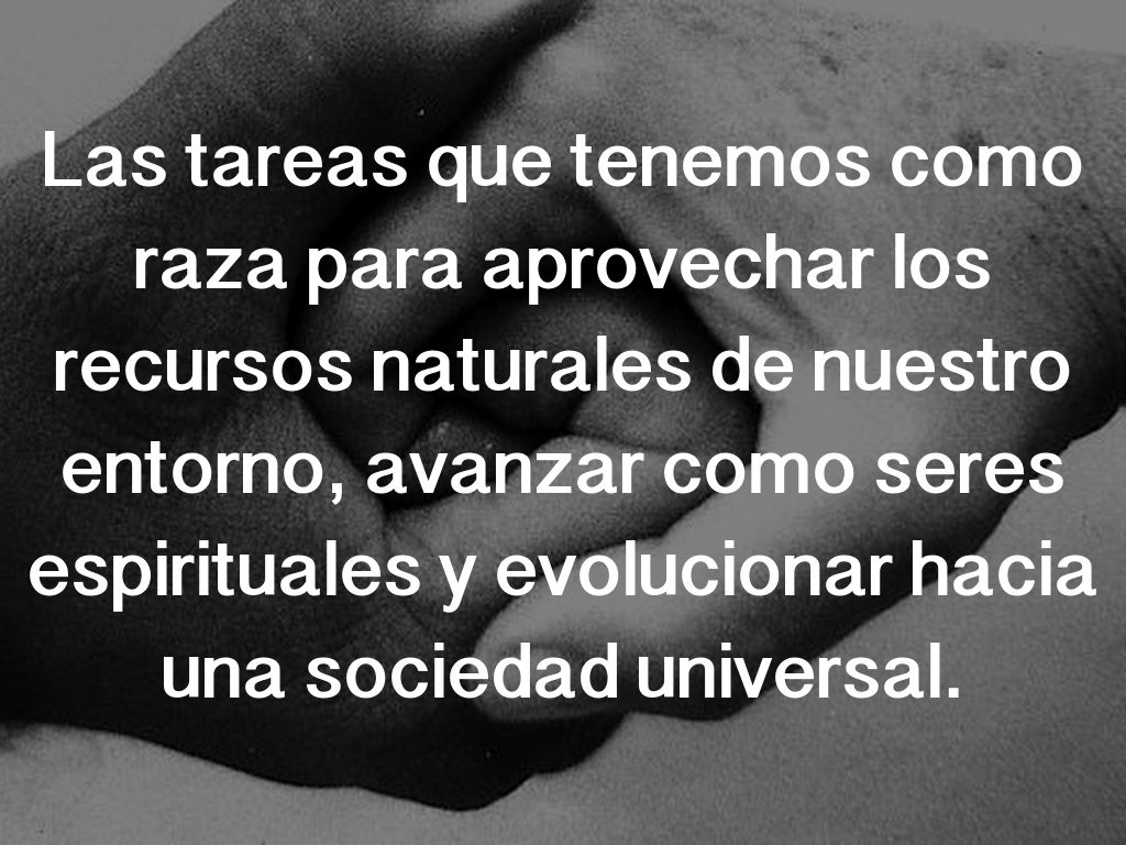 Las tareas que tenemos como raza para aprovechar los recursos naturales de nuestro entorno, avanzar como seres espirituales y evolucionar hacia una sociedad universal.