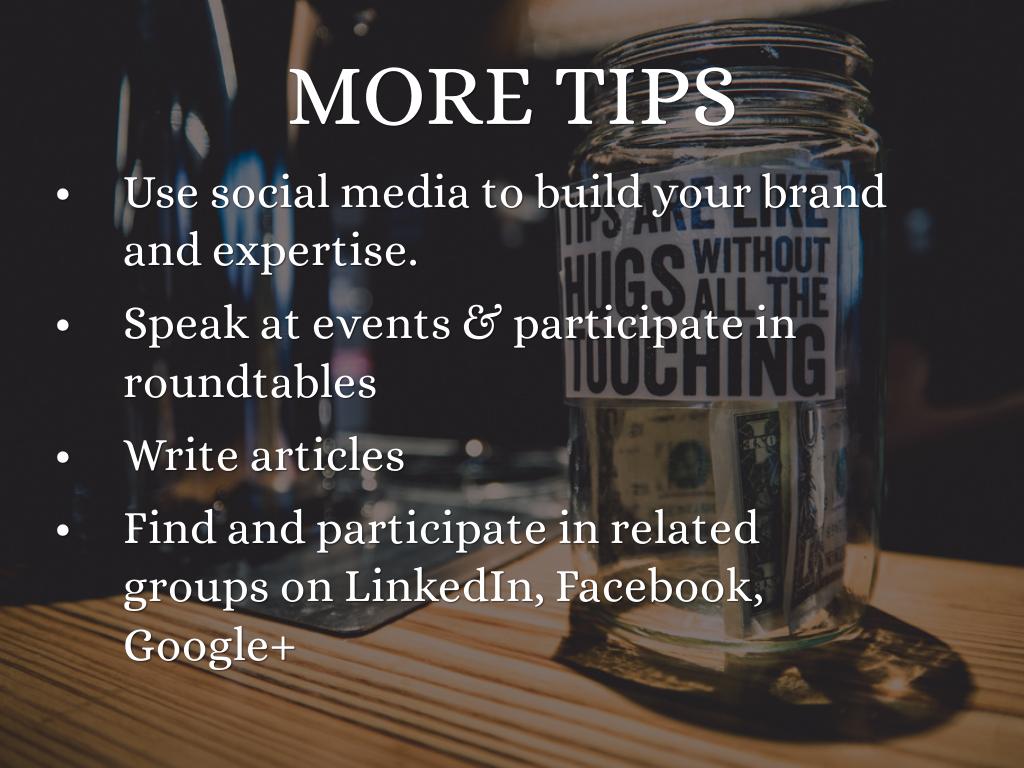 Find and participate in related groups on LinkedIn, Facebook, Google+