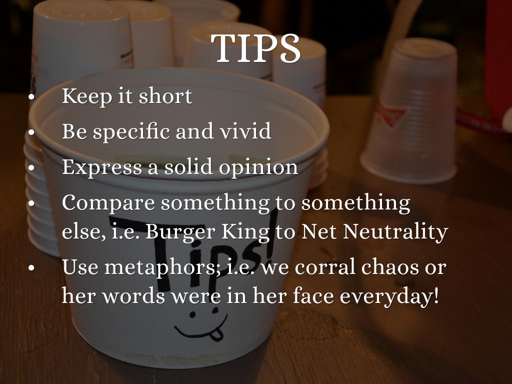 Compare something to something else, i.e. Burger King to Net Neutrality