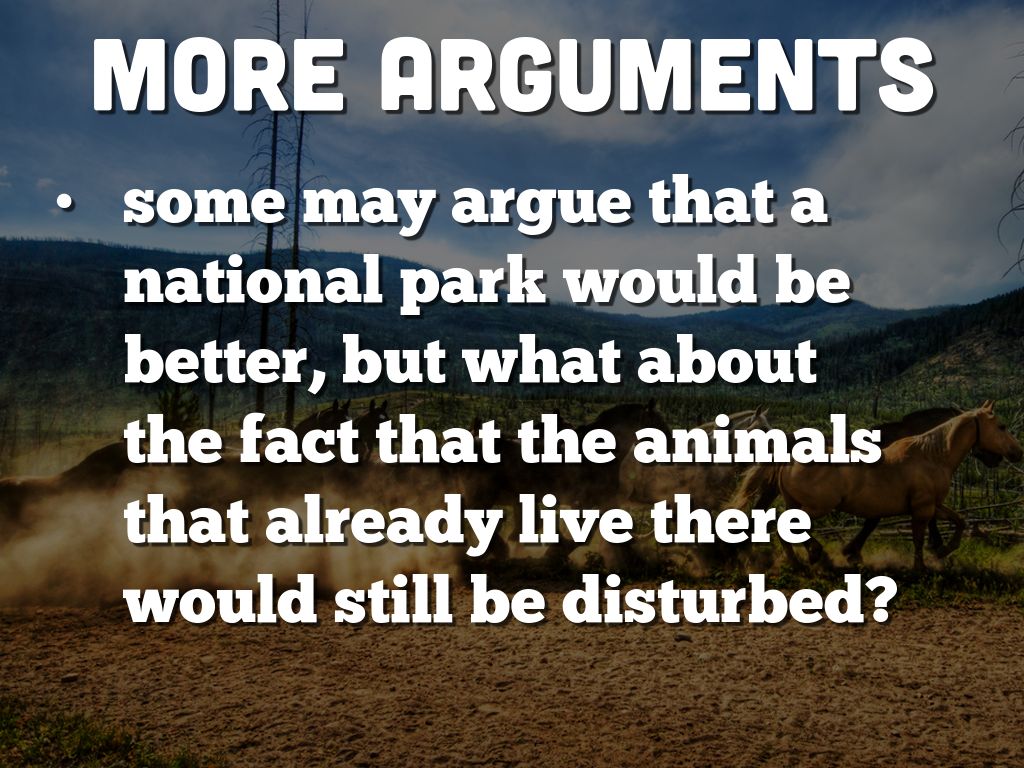 some may argue that a national park would be better, but what about the fact that the animals that already live there would still be disturbed?