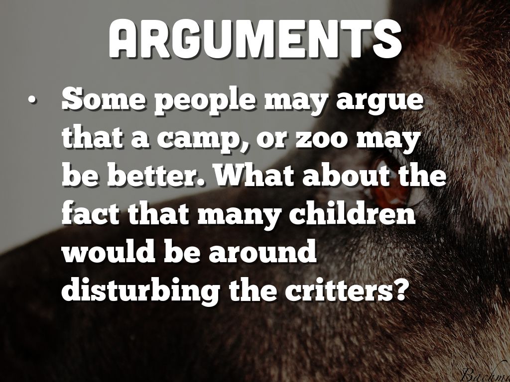 Some people may argue that a camp, or zoo may be better. What about the fact that many children would be around disturbing the critters?
