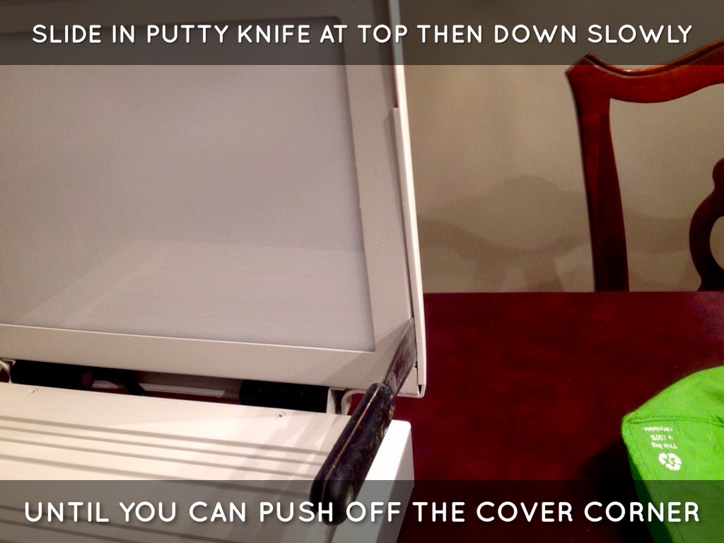 SLIDE IN PUTTY KNIFE AT TOP THEN DOWN SLOWLY