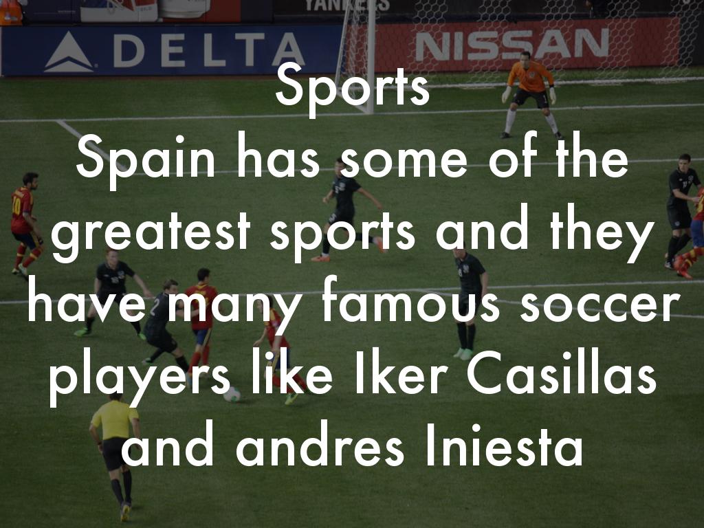 Spain has some of the greatest sports and they have many famous soccer players like Iker Casillas and andres Iniesta