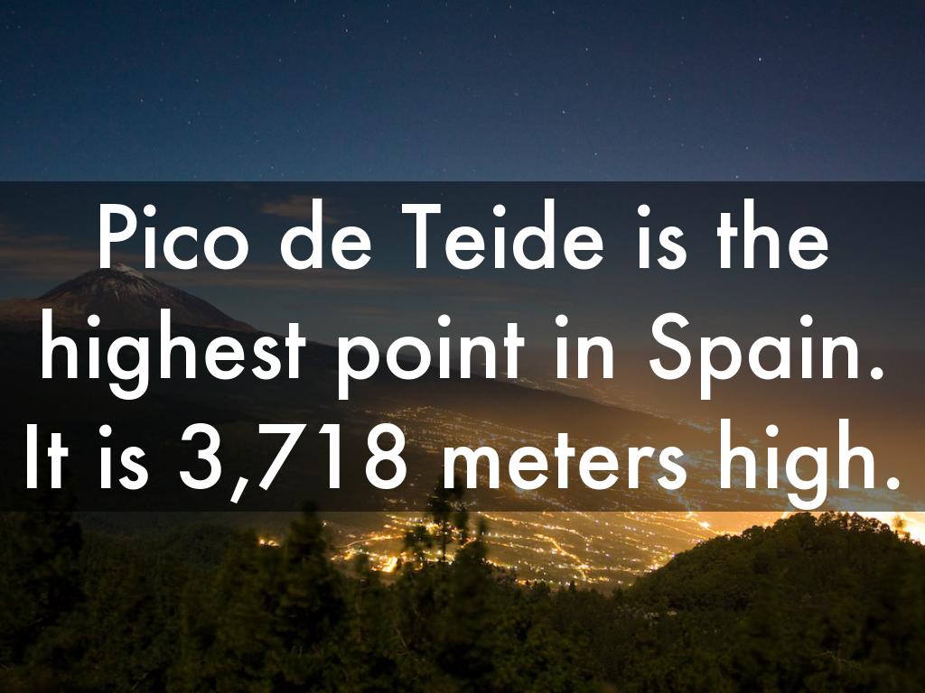 Pico de Teide is the highest point in Spain. It is 3,718 meters high.