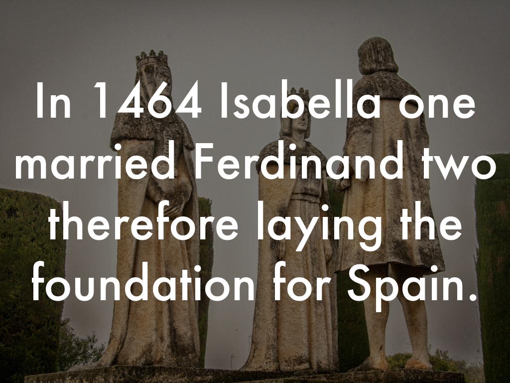 In 1464 Isabella one married Ferdinand two therefore laying the foundation for Spain.
