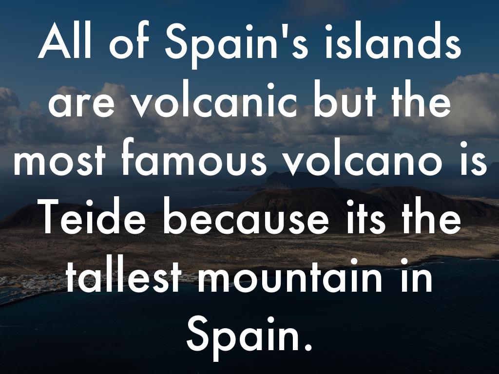 All of Spain's islands are volcanic but the most famous volcano is Teide because its the tallest mountain in Spain.