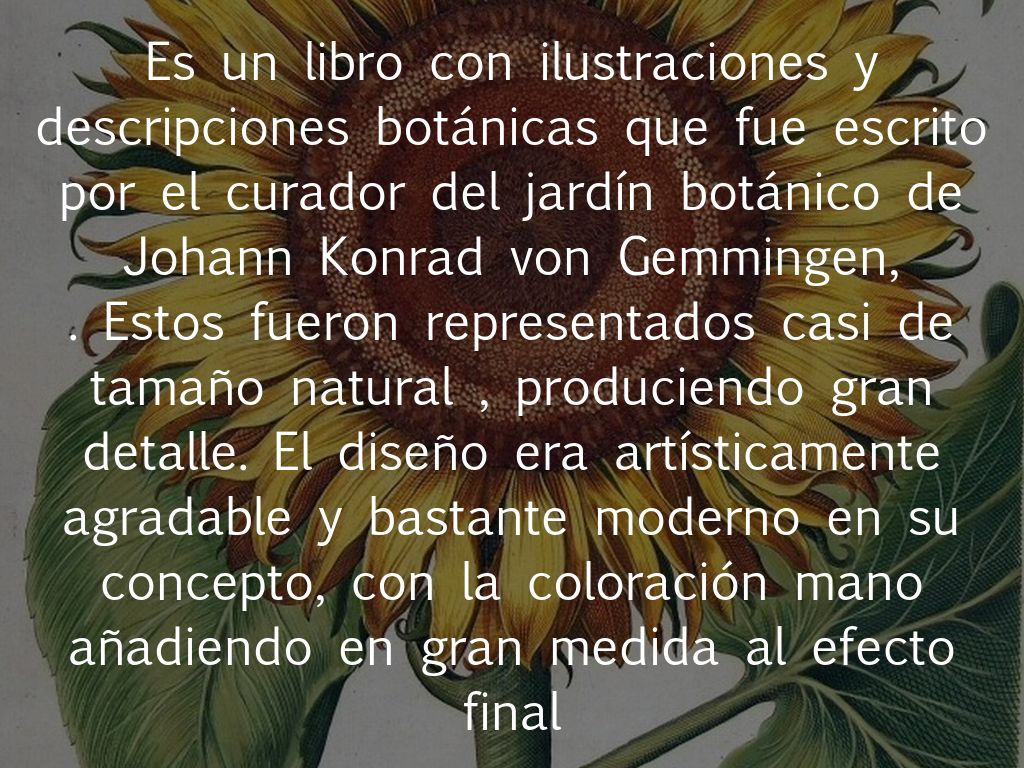 Es un libro con ilustraciones y descripciones botánicas que fue escrito por el curador del jardín botánico de Johann Konrad von Gemmingen,