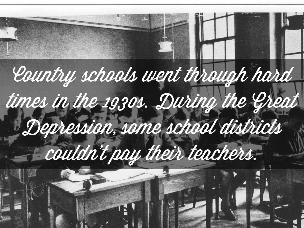 Country schools went through hard times in the 1930s. During the Great Depression, some school districts couldn't pay their teachers.