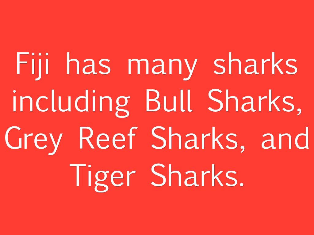 Fiji has many sharks including Bull Sharks, Grey Reef Sharks, and Tiger Sharks.