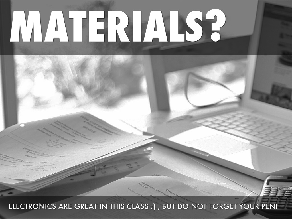 ELECTRONICS ARE GREAT IN THIS CLASS :) , BUT DO NOT FORGET YOUR PEN!