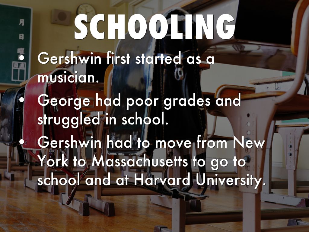 Gershwin had to move from New York to Massachusetts to go to school and at Harvard University.