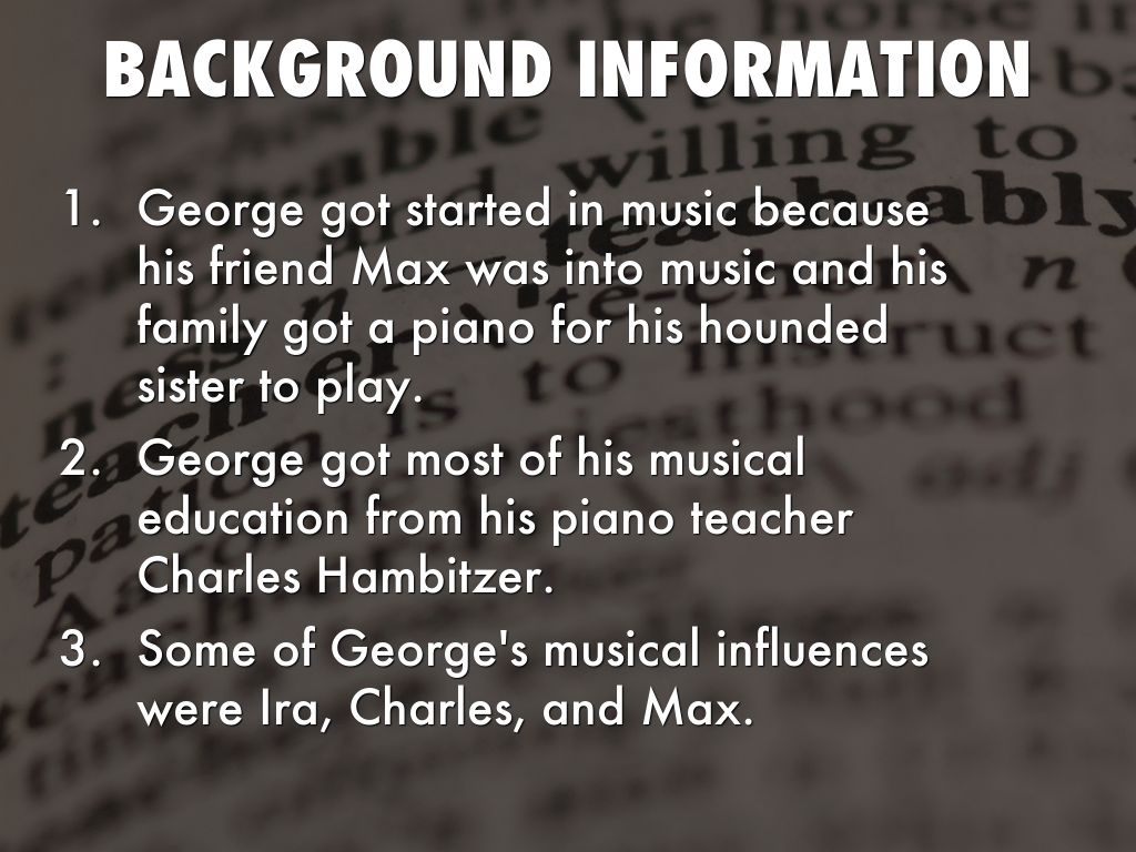 George got most of his musical education from his piano teacher Charles Hambitzer.