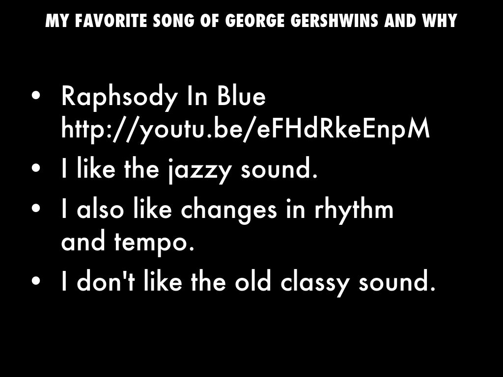 MY FAVORITE SONG OF GEORGE GERSHWINS AND WHY