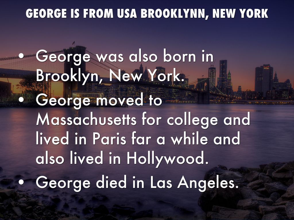 George moved to Massachusetts for college and lived in Paris far a while and also lived in Hollywood.