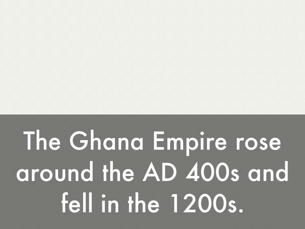 The Ghana Empire rose around the AD 400s and fell in the 1200s.