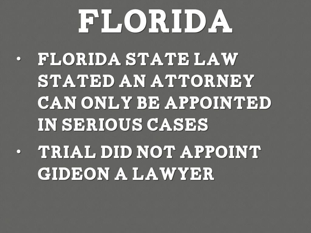 - Florida state law stated an attorney can only be appointed in serious cases