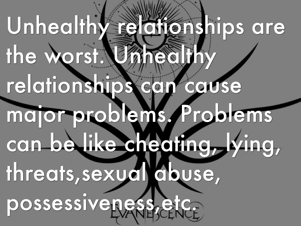 Unhealthy relationships are the worst. Unhealthy relationships can cause major problems. Problems can be like cheating, lying, threats,sexual abuse, possessiveness,etc.