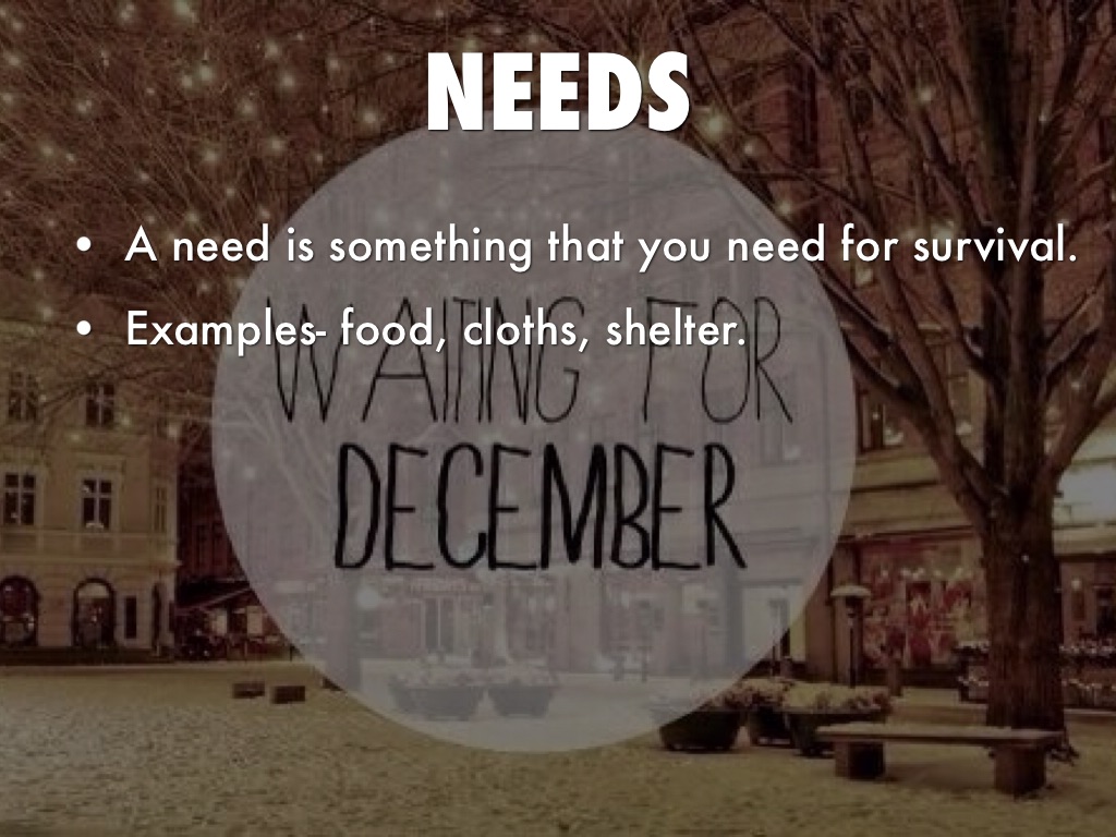 - Examples- food, cloths, shelter.