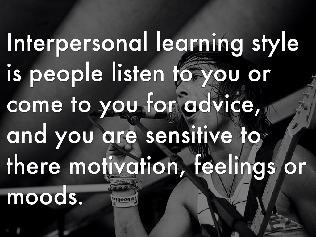 Interpersonal learning style is people listen to you or come to you for advice, and you are sensitive to there motivation, feelings or moods.