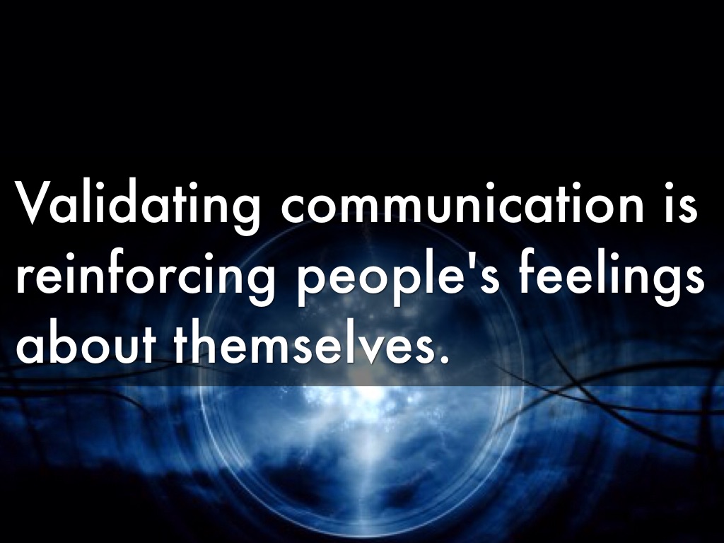 Validating communication is reinforcing people's feelings about themselves.