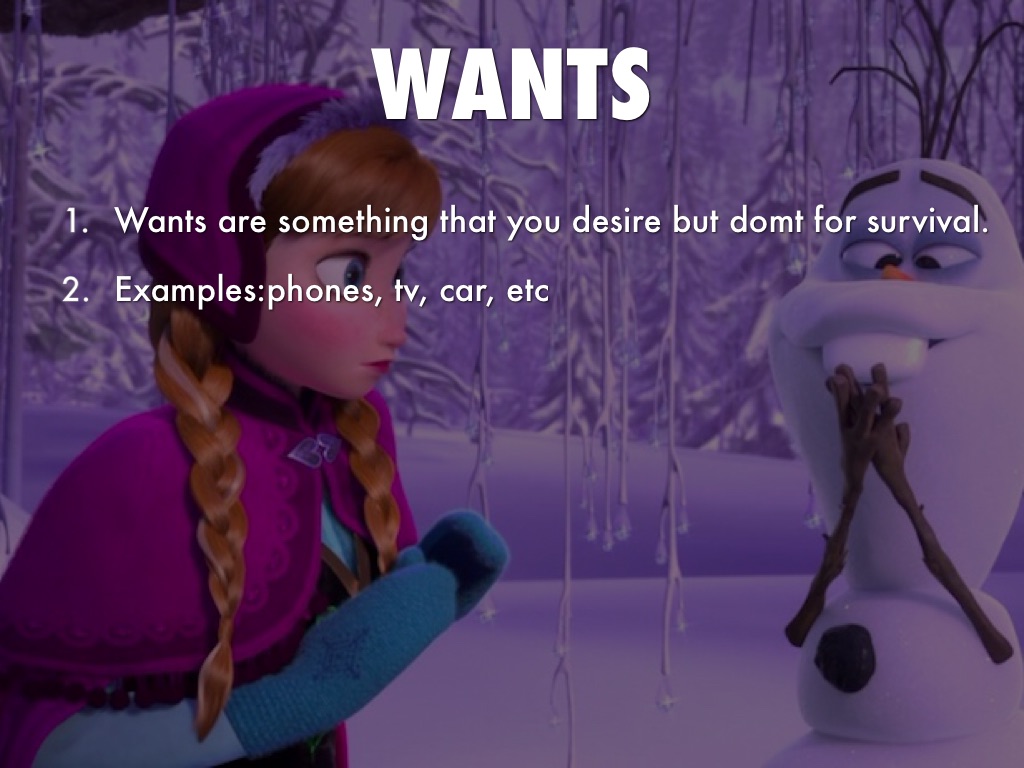 - Wants are something that you desire but domt for survival.