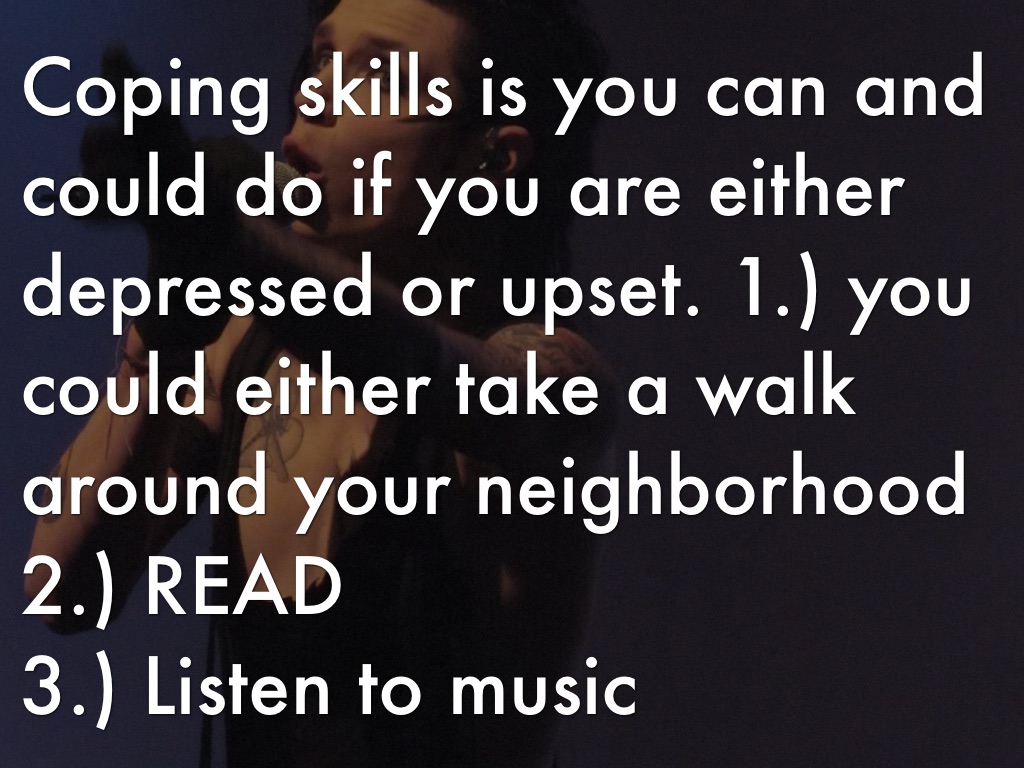 Coping skills is you can and could do if you are either depressed or upset. 1.) you could either take a walk around your neighborhood