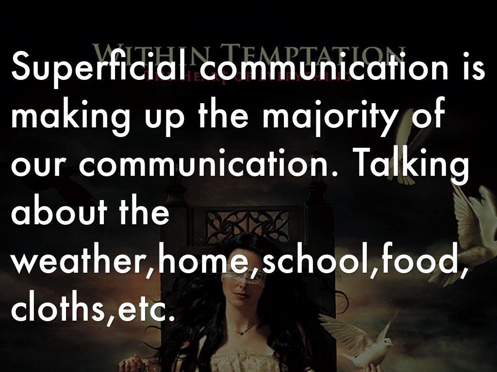 Superficial communication is making up the majority of our communication. Talking about the weather,home,school,food, cloths,etc.