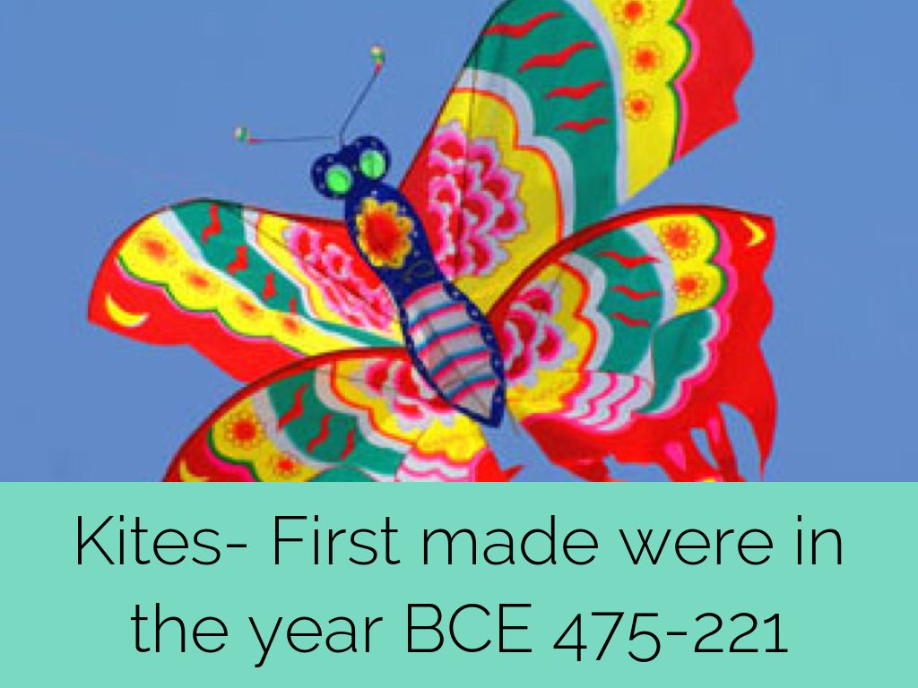 Kites- First made were in the year BCE 475-221