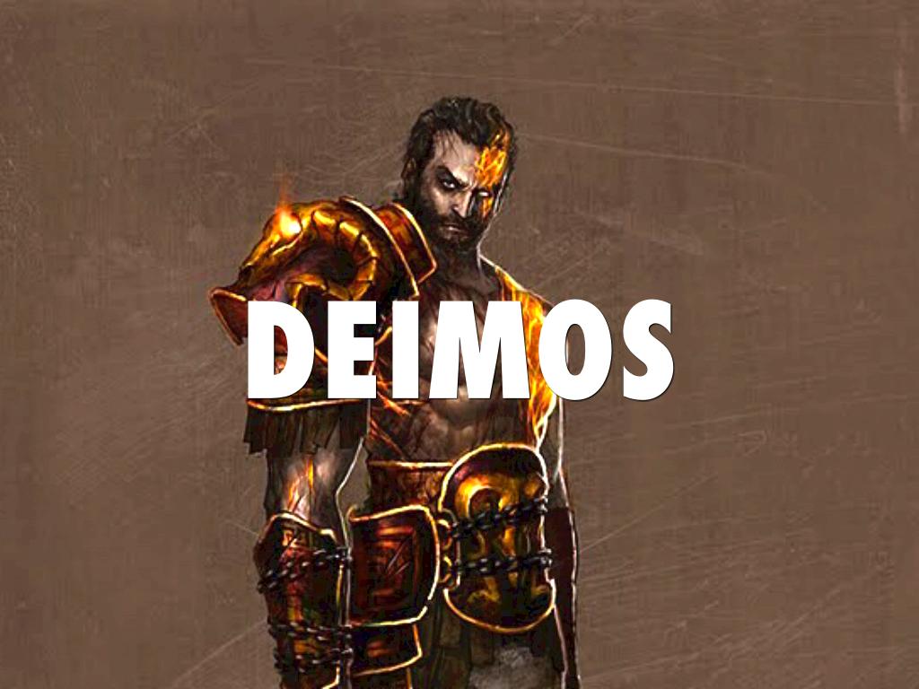 Deimos is Son of Aphrodite and Ares. Deimos and his Brother Phobos have the role of bringing sheer terror to the people by war.