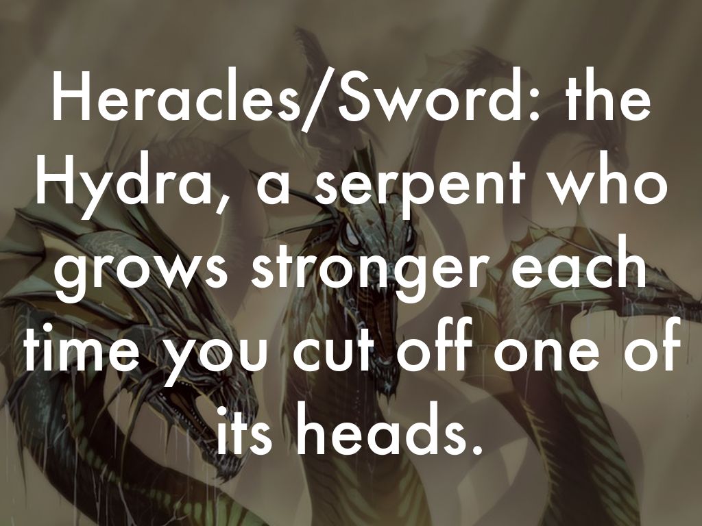 Heracles/Sword: the Hydra, a serpent who grows stronger each time you cut off one of its heads.