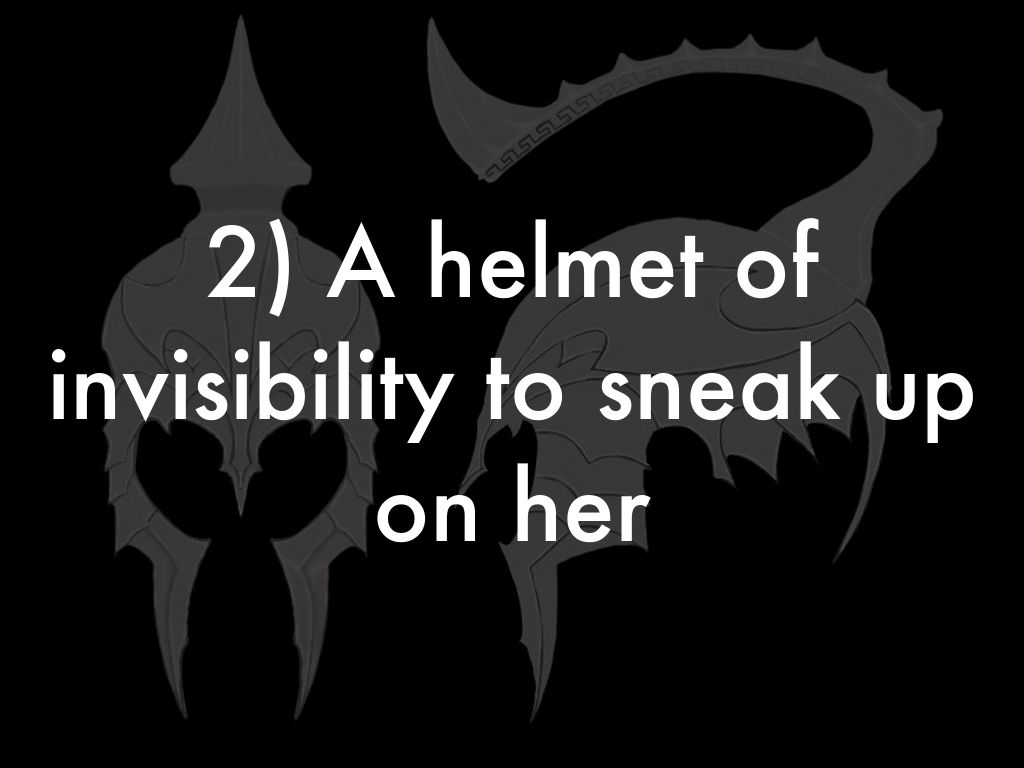 2) A helmet of invisibility to sneak up on her