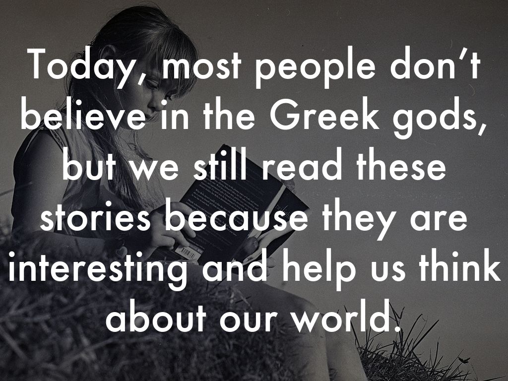 Today, most people don’t believe in the Greek gods, but we still read these stories because they are interesting and help us think about our world.