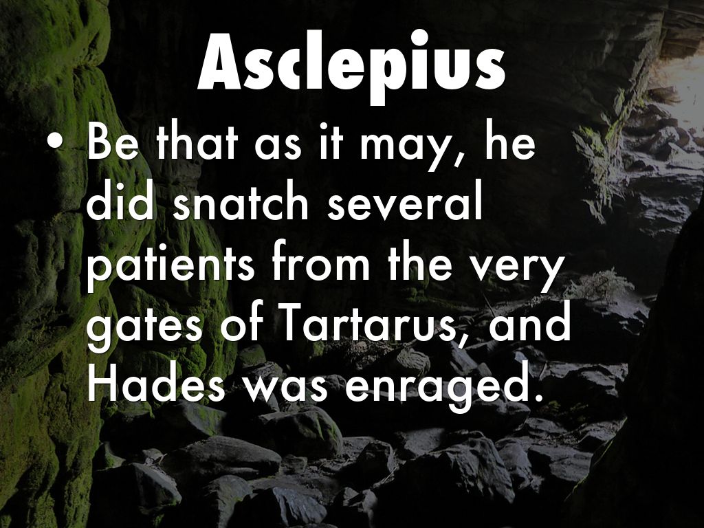 • Be that as it may, he did snatch several patients from the very gates of Tartarus, and Hades was enraged.