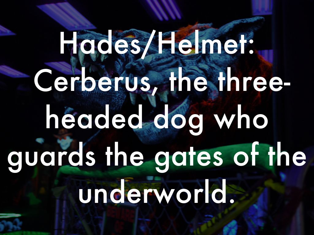 Hades/Helmet: Cerberus, the three-headed dog who guards the gates of the underworld.
