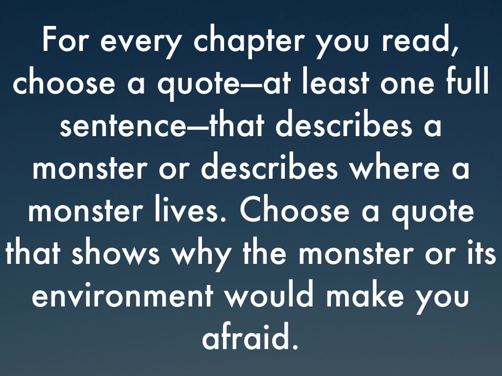 For every chapter you read, choose a quote—at least one full sentence—that describes a monster or describes where a monster lives. Choose a quote that shows why the monster or its environment would make you afraid.
