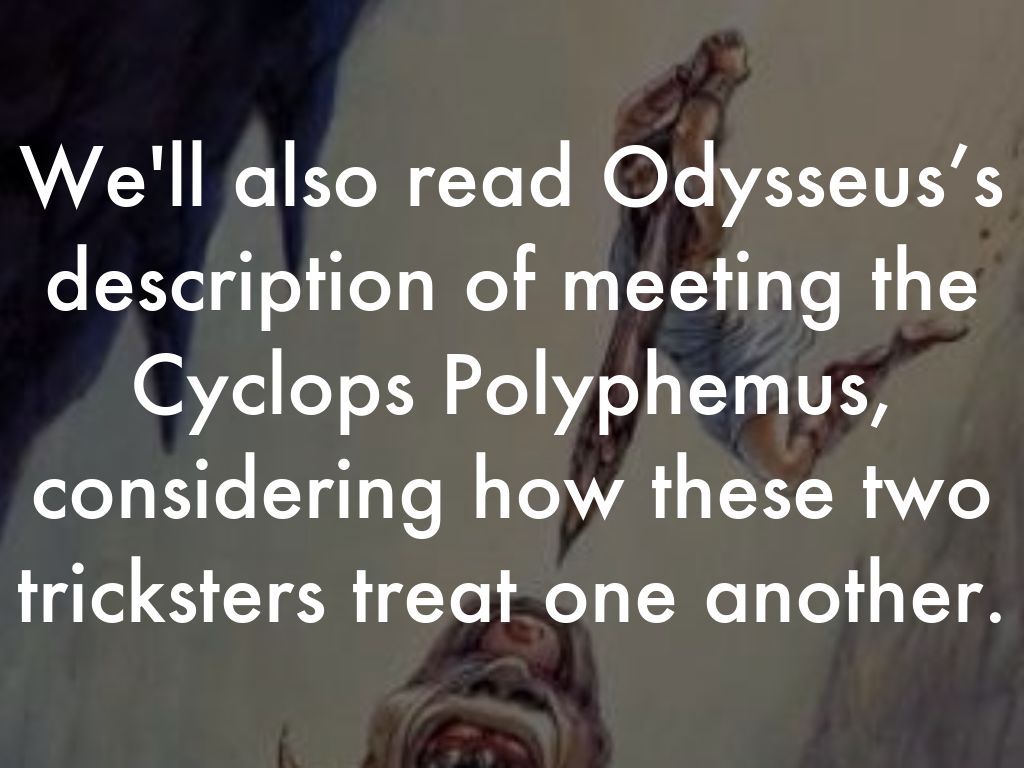 We'll also read Odysseus’s description of meeting the Cyclops Polyphemus, considering how these two tricksters treat one another.