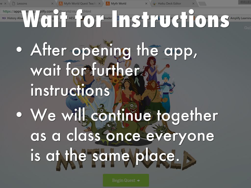 Students, you will explore Myth World for the majority of today's class.